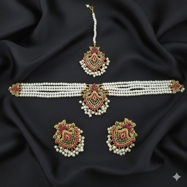 Whether paired with a saree, lehenga, or evening gown, the Pearl Choker Set β Ruby instantly transforms your outfit into a statement of luxury and poise. Crafted with precision and care, this set ensures you shine with confidence and class wherever you go.