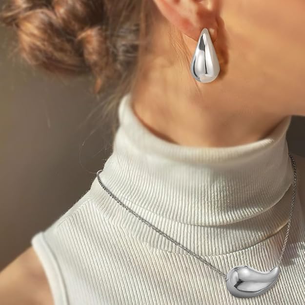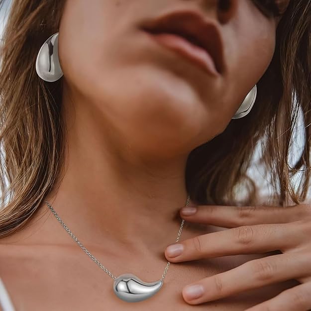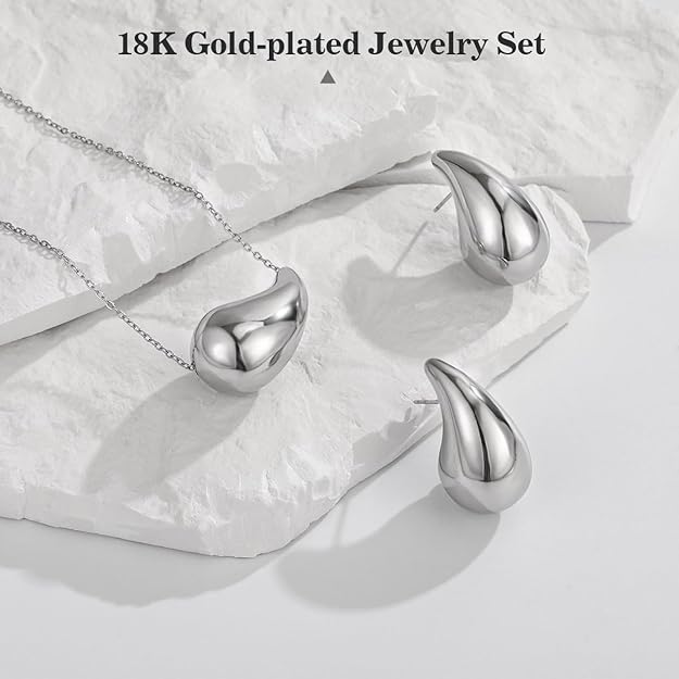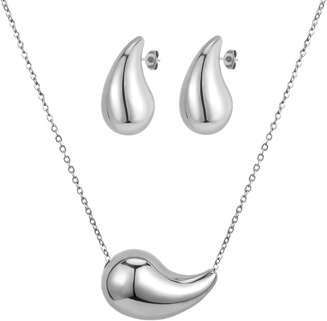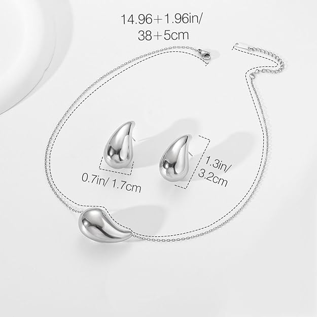 - Design Inspiration: Featured with the teardrop element, our jewelry set evokes the beauty of minimalism with its curved shape and simple design. The teardrop design combines an elegant symmetry with a feminine glamour. Wear the earrings and necklace set to start your day with elegance.